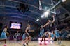 No. 23 Ethan Robert’s shooting a layup against Maine on Nov. 30.