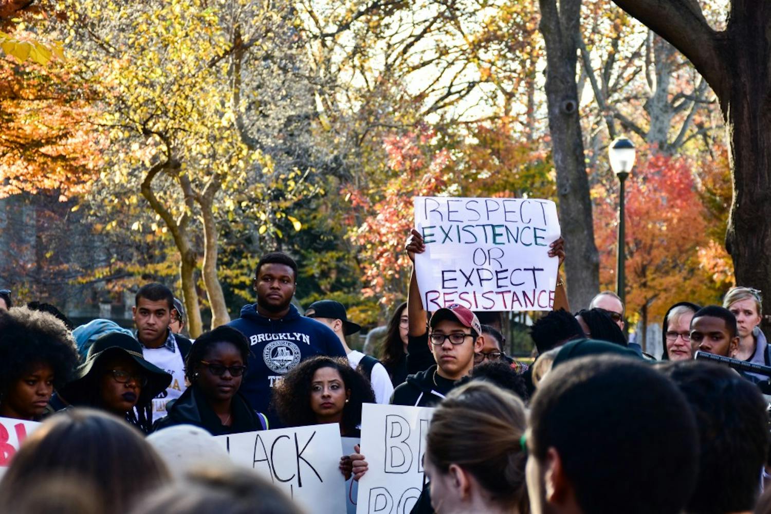 The walkout, organized by Students Organizing for Unity and Liberation in partnership with Black Graduate Students, brought protesters to College Green, is the latest in string of protests related to the racist GroupMe messages.