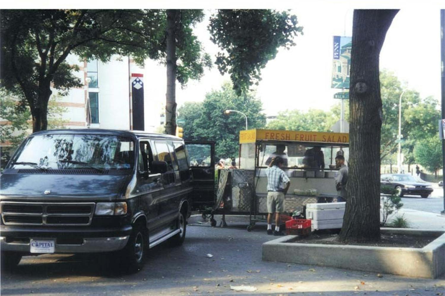 Don Ly stands by his fruit truck at 34th and Walnut streets years ago.