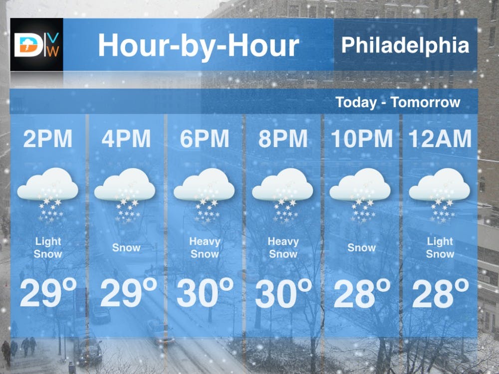 Philadelphia is under a Winter Storm Warning for six to 10 inches of snow combined with 15-20 miles per hour winds and near zero visibility for some time on Thursday morning.