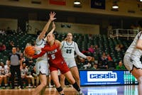Then-junior guard Georgia Heine drives in at a game on Nov. 20,2024.